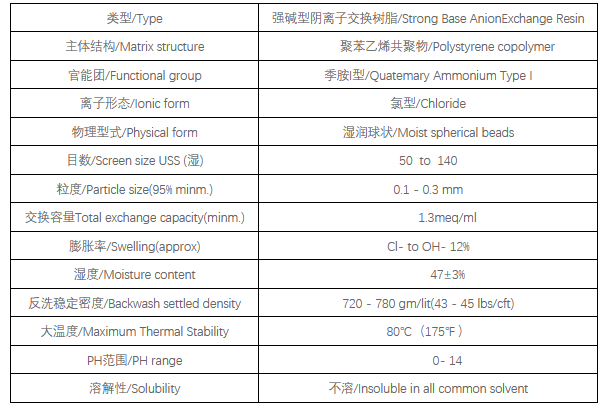 Tulsimer?A-853E是一款包含季胺I型官能團的聚苯乙烯架構的“堅韌膠凝體”強堿型陰離子交換樹(shù)脂,可以在較大的PH范圍和溫度條件下運行,并且再生效率高,主要應用在強酸和弱酸的去除。